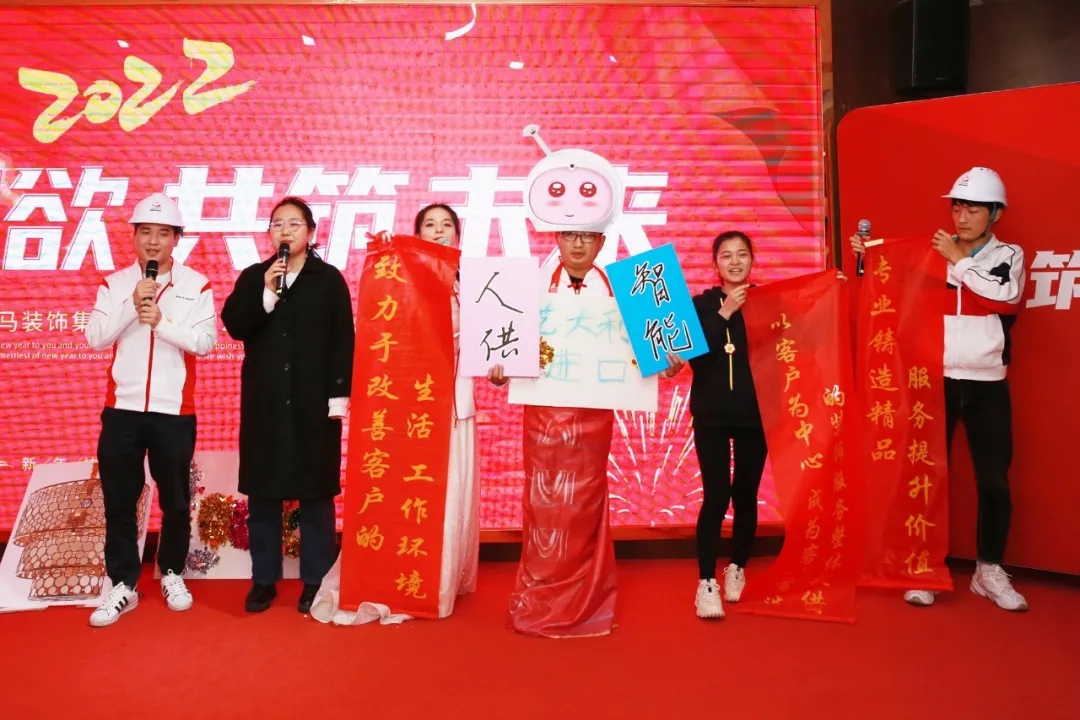 晚會在千里馬裝飾李向東董事長熱情洋溢的新年致詞中拉開序幕。李董首先代表集團向蒞臨晚會的各位嘉賓表示最熱烈的歡迎,向全體員工致以最誠摯的新年問候和衷心的祝福!他說,2022年我們要穩(wěn)發(fā)展、穩(wěn)現(xiàn)金流、穩(wěn)隊伍建設(shè),在變化多端的經(jīng)濟形勢下,穩(wěn)字當(dāng)頭,平穩(wěn)過度。愿我們不忘初心,砥礪前行!干杯!