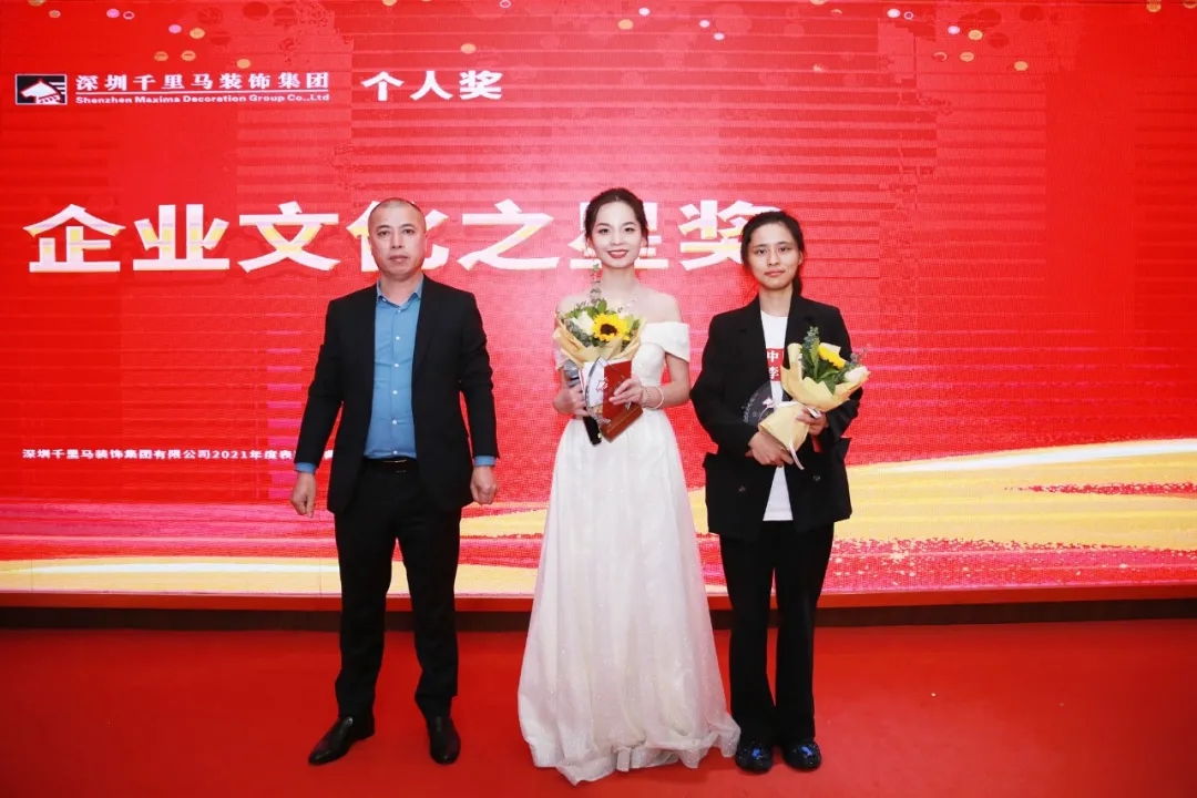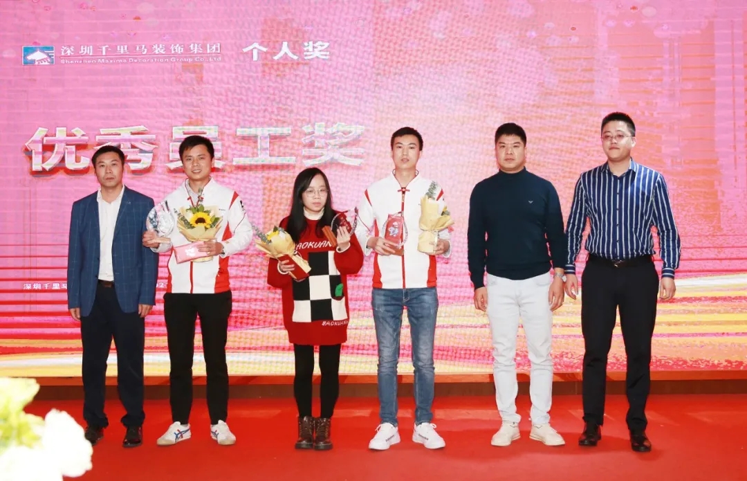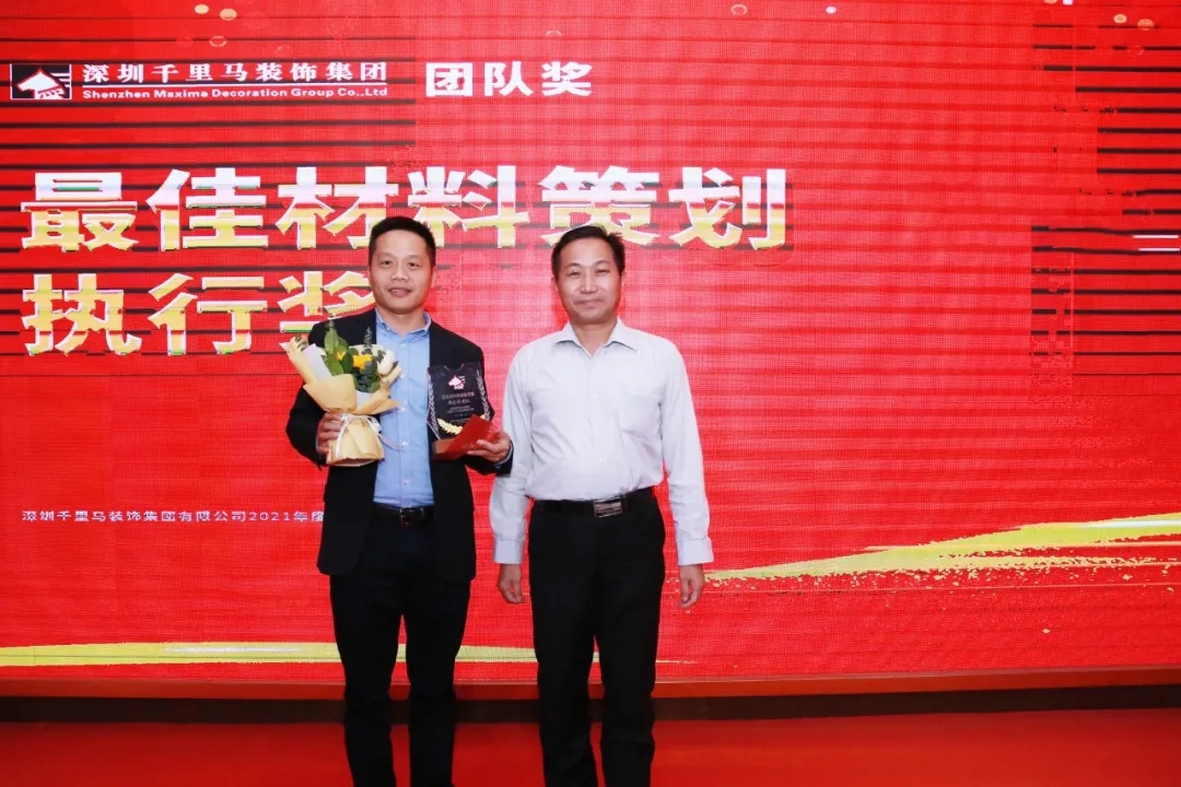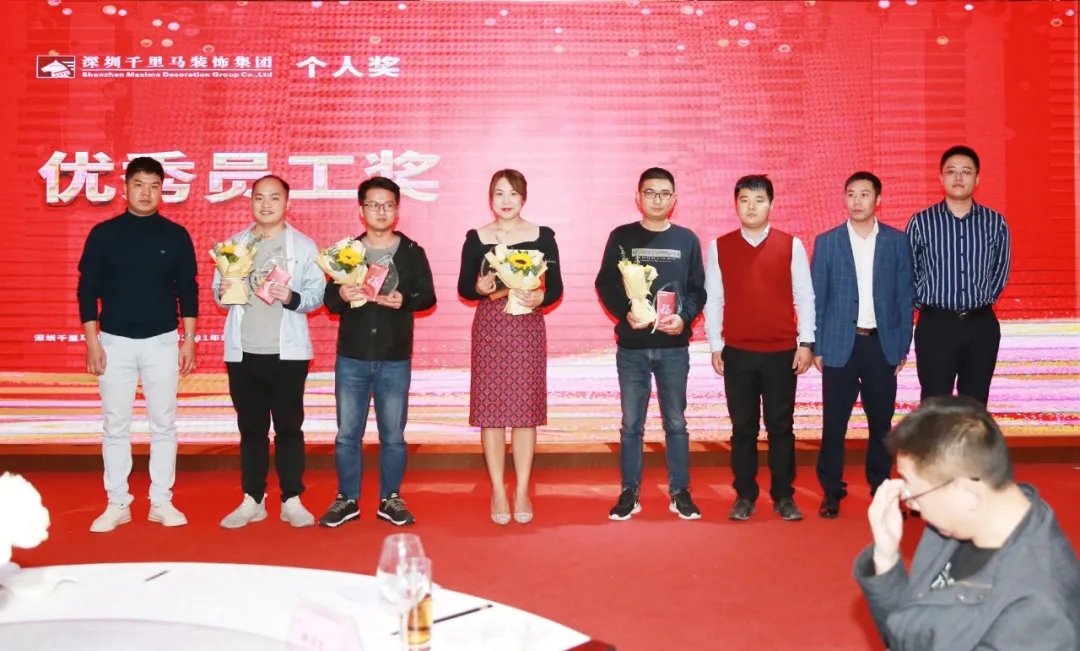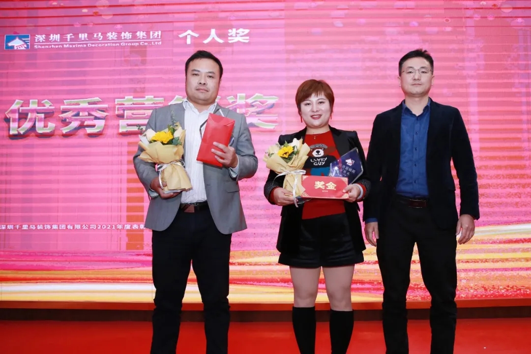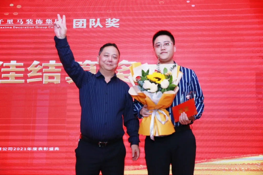 隨后,千里馬裝飾李向東董事長、李文學(xué)總經(jīng)理、朱建國副總經(jīng)理、丁利斌副總經(jīng)理等領(lǐng)導(dǎo)分別為2021年度優(yōu)秀團隊及個人進(jìn)行了表彰頒獎,這其中有公司的新人,也有見證公司歷程的元老,更有一批與公司長期同發(fā)展、共進(jìn)步的項目管理人員,現(xiàn)場全體人員為他們獻(xiàn)上了最熱烈的掌聲,感謝他們?yōu)楣緞?chuàng)造的卓越成績,鼓勵他們?yōu)楣咀龀龈筘暙I(xiàn)。