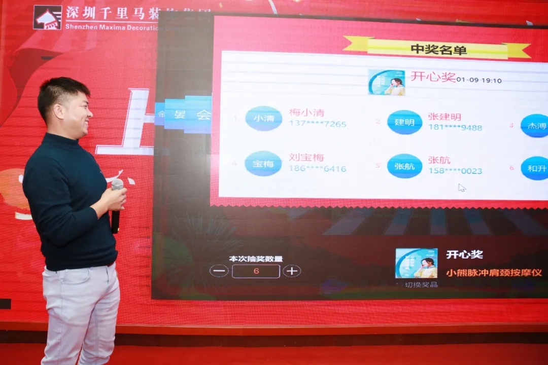 隨著晚會的推進(jìn),最讓人激動人心的年會幸運抽獎環(huán)節(jié)隨之而來,為了讓與會的員工都能滿載而歸,此次晚會準(zhǔn)備了豐富的獎品及多份高額大獎,隨著一份份大獎驚喜而又溫馨的送出,現(xiàn)場笑聲、掌聲、歡呼聲不斷在整場活動中蕩漾,將晚會氣氛推向高潮。