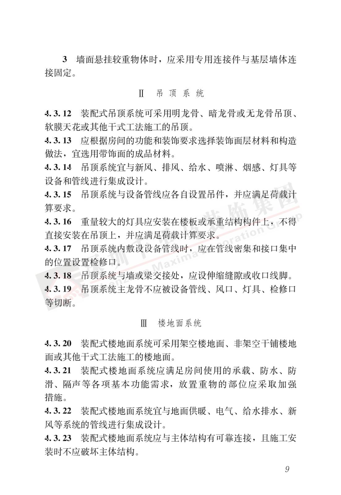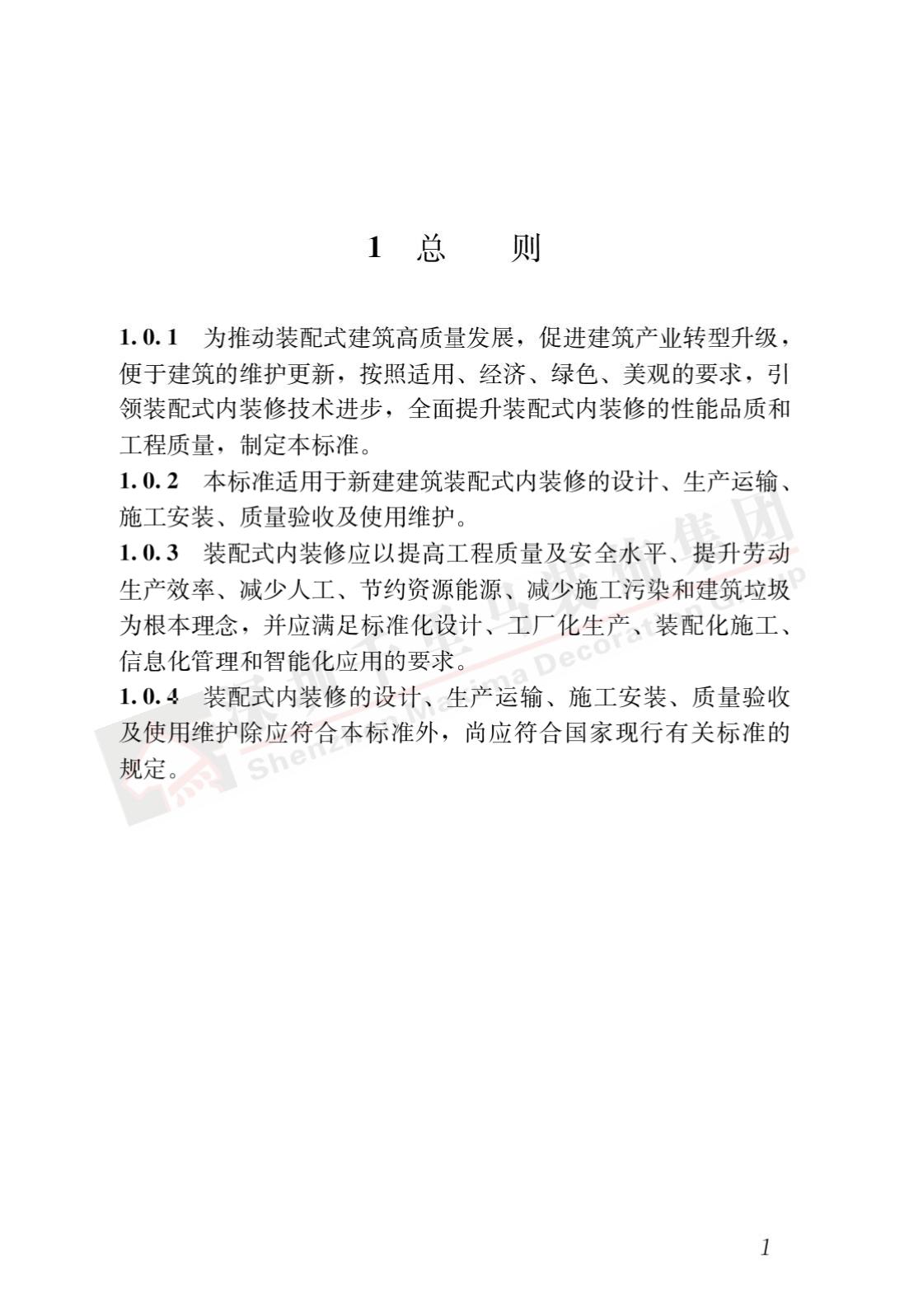裝配式內(nèi)裝修的設(shè)計、生產(chǎn)運(yùn)輸、施工安裝、質(zhì)量驗(yàn)收及使用維護(hù),除應(yīng)符合本標(biāo)準(zhǔn)外,尚應(yīng)符合國家現(xiàn)行有關(guān)標(biāo)準(zhǔn)規(guī)定。