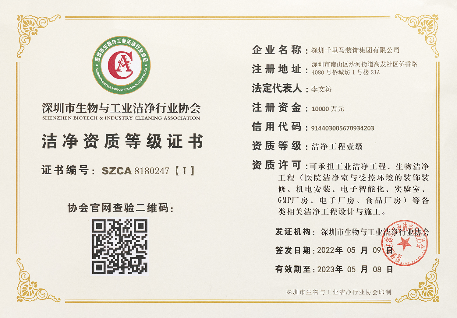 近日,千里馬裝飾集團取得潔凈工程壹級資質成為深圳市生物與工業潔凈行業協會會員單位。該資質可承接工業潔凈工程、生物潔凈工程(醫院潔凈室與受控環境的裝飾裝修、機電安裝、電子智能化、實驗室、GMP廠房、電子廠房、食品廠房)等各類相關潔凈工程設計與施工,該資質的取得標志著千里馬裝飾集團正式進入潔凈行業市場,特別是醫院細分市場的專業設計與施工承接。