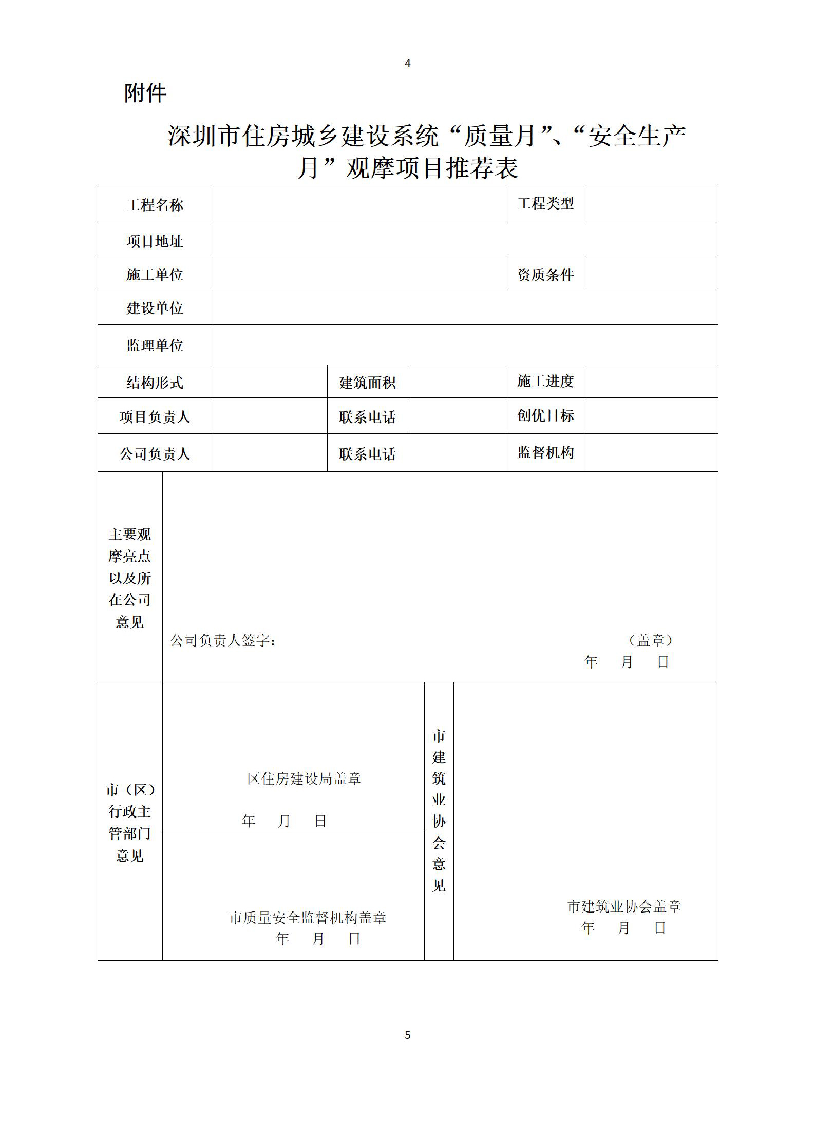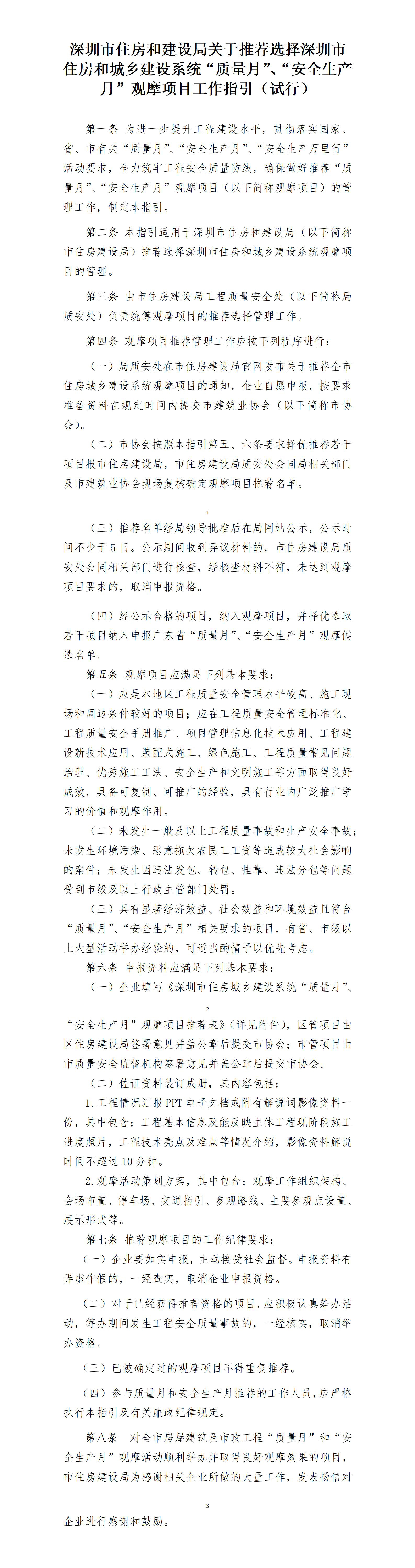 深圳市住房和建設局印發關于推薦住房和城鄉建設系統“質量月”“安全生產月”觀摩項目工作指引(試行)的通知