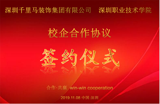 2019年11月8日,深圳千里馬裝飾集團(tuán)有限公司(簡稱深圳千里馬裝飾集團(tuán))與深圳職業(yè)技術(shù)學(xué)院(簡稱深職院)校企合作簽約儀式在深圳千里馬裝飾集團(tuán)總部舉行。