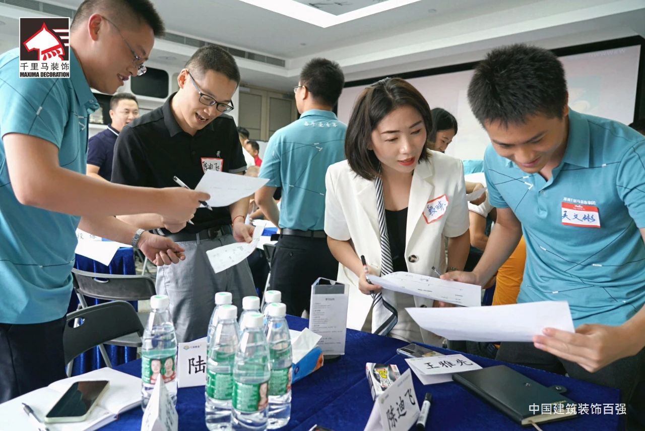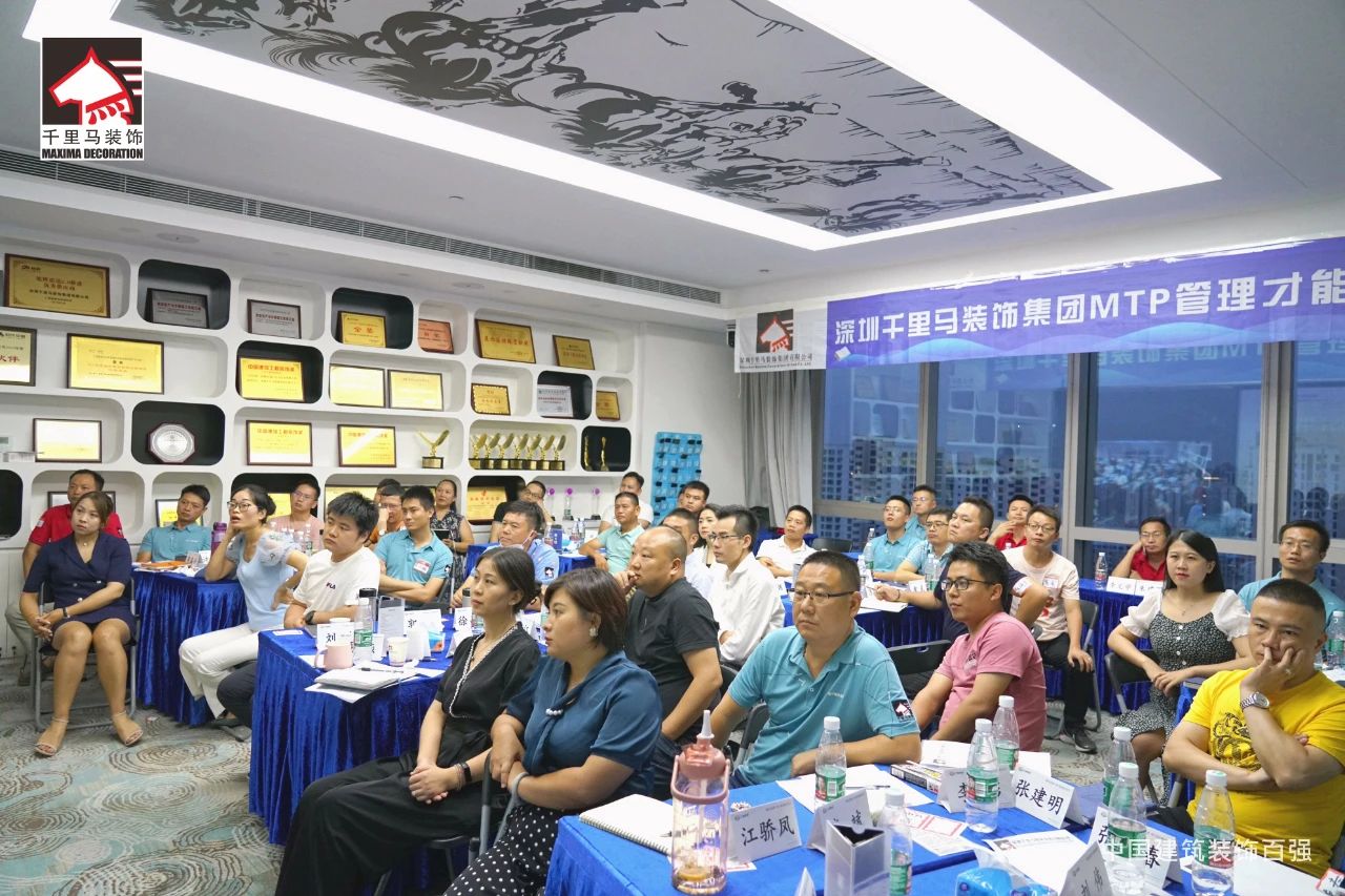 邁進會議室,迎面而來的是擺放得整整齊齊的藍色課桌,抬頭看,清新怡人的藍白色相間的橫幅映入眼簾——“深圳千里馬裝飾集團MTP管理才能發展培訓”,原來是為了提升中層管理