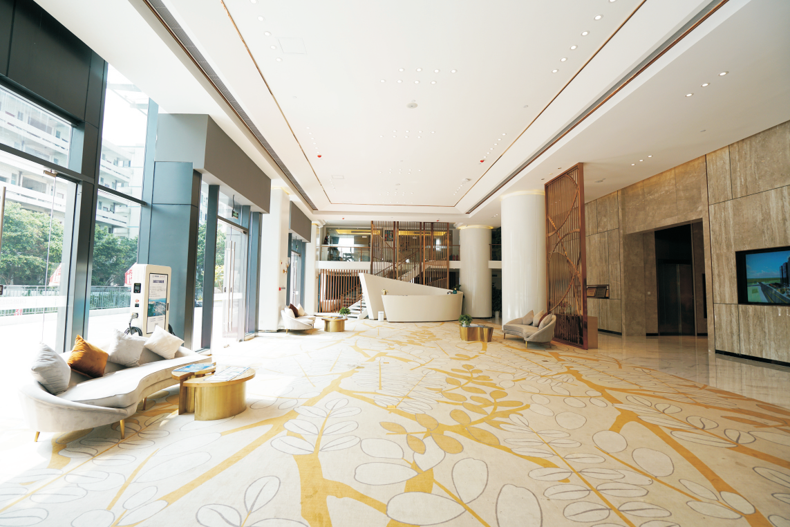 創新智慧港,位于灣區核心,深圳西門戶,新橋智創城核心,近鄰國際會展中心。該外墻面積約46000平米,建筑的外立面采用框架式結構全景玻璃幕墻設計,塑造摩登時尚的商務形象,玻璃幕墻搭配5.4米層高,可以得到舒適的散射自然光并避免太陽直射帶來的高能耗。